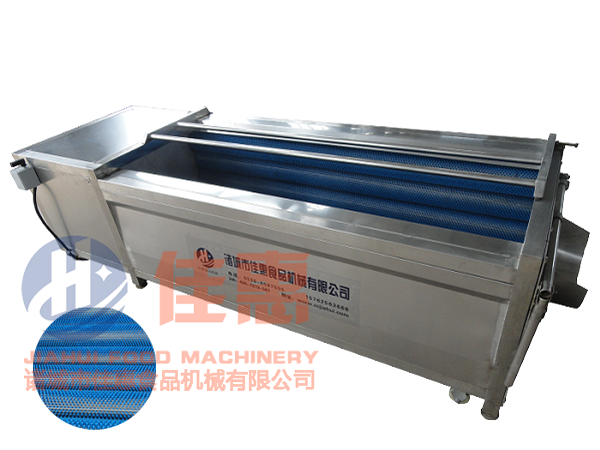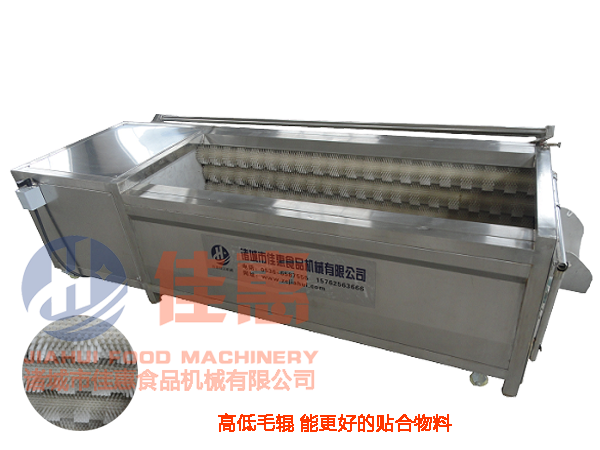1、毛輥去皮清洗機(jī)是我公司吸取了國內(nèi)外對根薯類、海鮮類加工機(jī)械的特點設(shè)計制造的,采用毛刷低速清洗,砂輥高速去皮原理。 2、毛輥去皮清洗機(jī)清洗輥軸全部為采用進(jìn)口優(yōu)質(zhì)尼龍絲(絲毛軟硬皆可定做,軟毛適合清洗,硬毛適合去皮)制作,絲毛經(jīng)久耐用,超大清洗量,洗刷更干凈,產(chǎn)品更光滑亮澤。(該清洗機(jī)內(nèi)毛刷輥的數(shù)量可根據(jù)客戶需求訂做) 3、毛輥去皮清洗機(jī)主要由電機(jī)、變速器、7-9支毛輥等組成,有1500型,1800型2000型三種型號,廣泛適用于圓形、橢圓形果蔬。 4、毛輥去皮清洗機(jī)具有外形美觀和操作方便,清洗脫皮面積大、效率高,耗能小,可連續(xù)清洗,操作簡單,使用壽命長等特點,刷輥材料經(jīng)特殊工藝處理(采用尼龍線繩軋制而成),經(jīng)久耐用,耐磨性能好。 5、毛輥去皮清洗機(jī)箱體采用優(yōu)質(zhì)不銹鋼材質(zhì),不銹蝕、清潔衛(wèi)生。 設(shè)備示意圖: